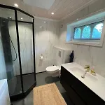 Die Small Cabin At Seljestad bietet zudem einen Blick auf den Garten. Diese Unterkunft verfügt über ein Badezimmer mit einer getrennten Toilette und einer Dusche.
